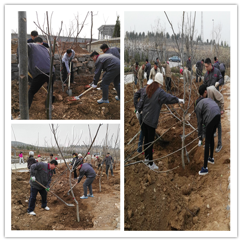 春回大地、萬物復(fù)蘇,為搶抓植樹綠化的好時機(jī),自三月份開始,集團(tuán)辦公室陸續(xù)展開了一系列植樹綠化活動,3月20日,根據(jù)樹坑開挖等情況,集團(tuán)辦公室組織財務(wù)中心、運營中心、發(fā)展中心、魯中水泥、熱電廠等單位40余人到團(tuán)山生態(tài)園進(jìn)行第一次樹苗栽種。