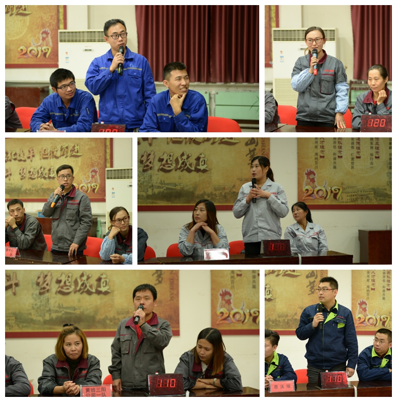 本次競賽分預(yù)賽和決賽兩個階段進行,共有個人必答題、集體必答題、搶答題和觀眾互動答題四個環(huán)節(jié)。選手們經(jīng)過賽前周密的準(zhǔn)備,在必答題環(huán)節(jié)選手們沉穩(wěn)應(yīng)對、對答如流,贏得了觀眾熱烈的掌聲。在激烈的搶答題環(huán)節(jié)中,選手們思維敏捷,搶答迅速,各隊比分緊咬不放,優(yōu)勢方幾度改變輪轉(zhuǎn)。通過三場精彩的預(yù)賽,魯中水泥物資部代表隊、動力車間代表隊、熱電廠代表隊、發(fā)展中心一隊、黃驊三陽公司一隊和二隊共6只隊伍脫穎而出,進入決賽。