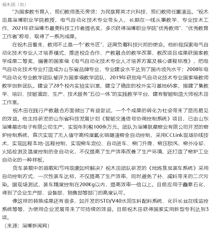 【淄博工匠】“淄博金牌工匠”祝木田—— 一線“教書匠”心懷科技夢