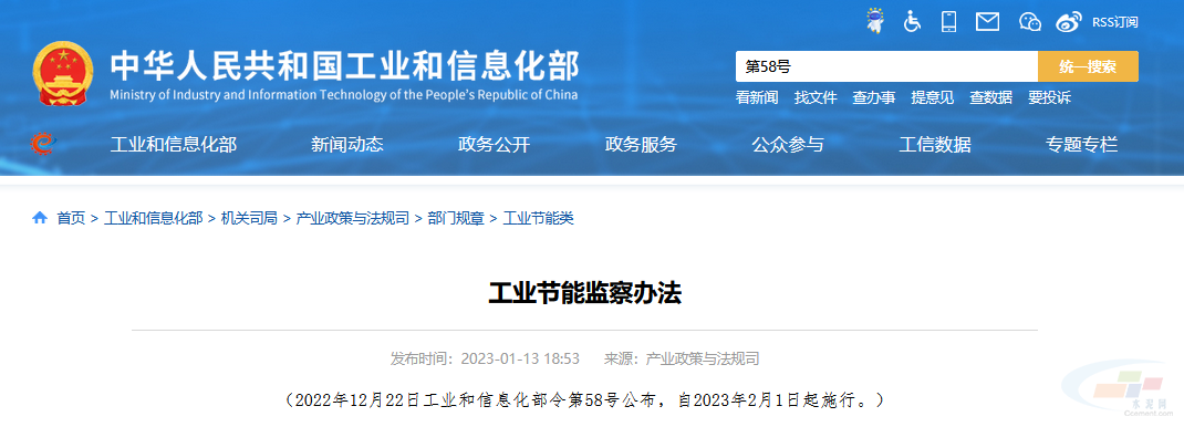 近日,工業(yè)和信息化部發(fā)布《工業(yè)節(jié)能監(jiān)察辦法》(工業(yè)和信息化部令第58號,以下簡稱《辦法》),并于2023年2月1日起施行。......