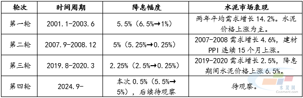 表1:2001年以來美聯(lián)儲歷次降息與水泥市場表現(xiàn)